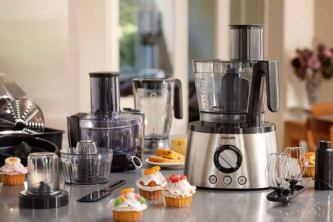 See Philipsi 7000 seeria köögikombain on mitmekesine lahendus teie köögi jaoks. Tänu uuenduslikule metallist sõtkumiskonksule, võimsale 1300 W mootorile ja taina valmistamiseks mõeldud ühe puudutusega automaatnupule ei ole leiva ja saia küpsetamine kunagi nii lihtne olnud.